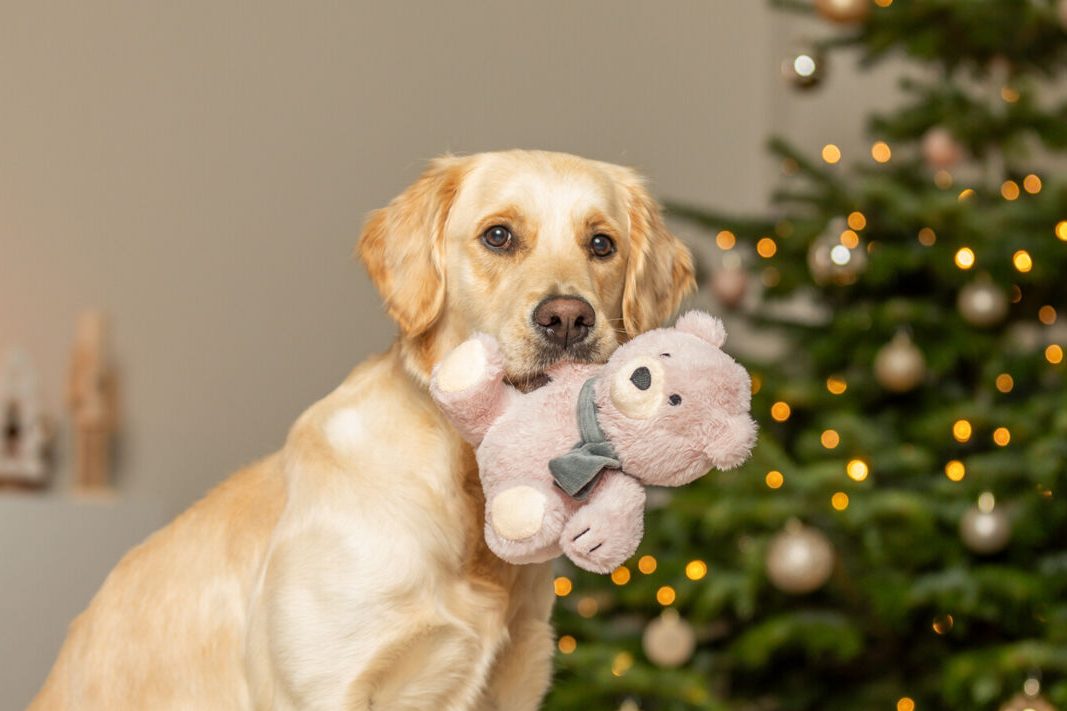 Plus qu’une peluche, ce mignon nounours de Noël est un véritable doudou. Il conviendra aux chiens (ou aux oreilles) sensibles car il est silencieux et extrêmement doux !